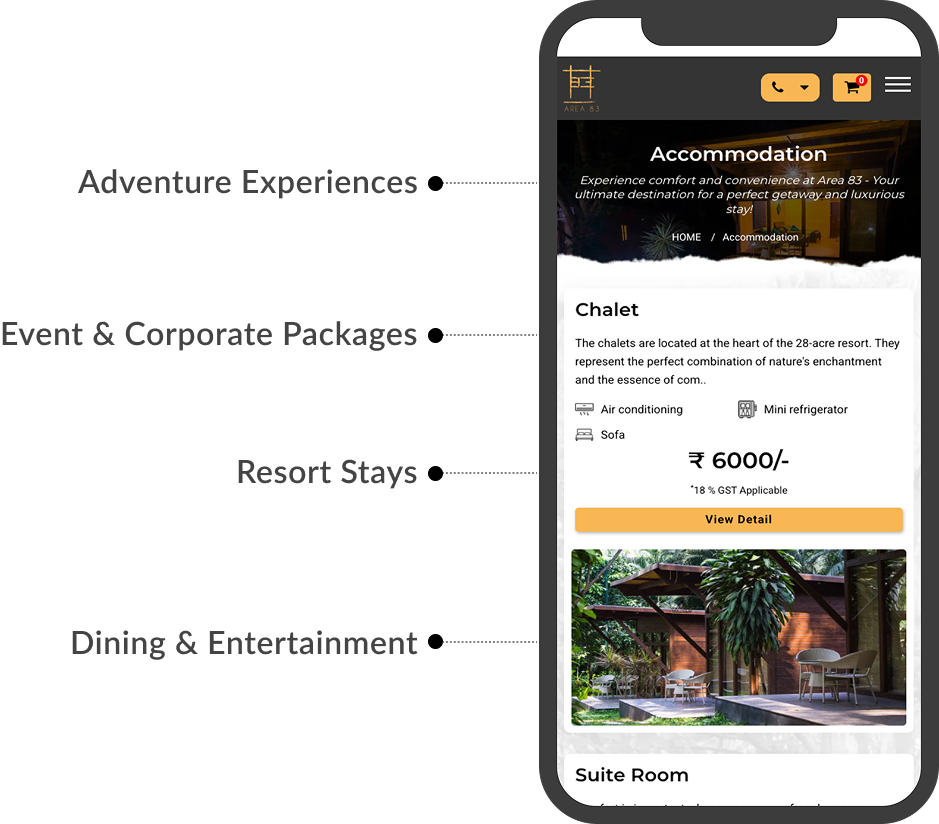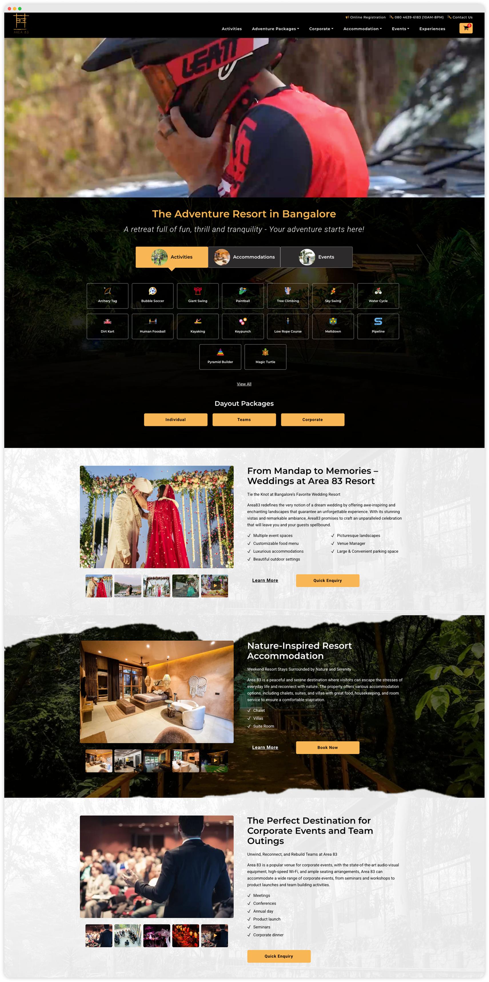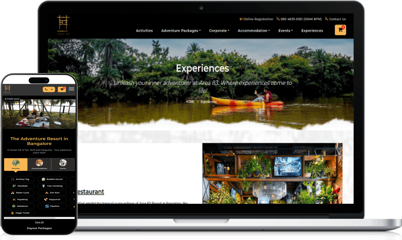 Area 83, a leading adventure resort in Bangalore, was seeking a digital solution that could simplify bookings, streamline internal processes, and enhance customer engagement. Their existing setup lacked an integrated system to manage reservations, payments, and guest experiences, which limited scalability and efficiency.